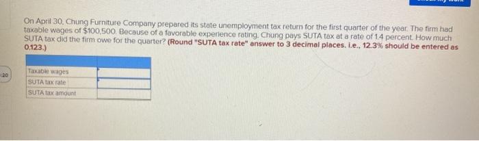Solved On April 30 Chung Furniture Company Prepared Its Chegg Com